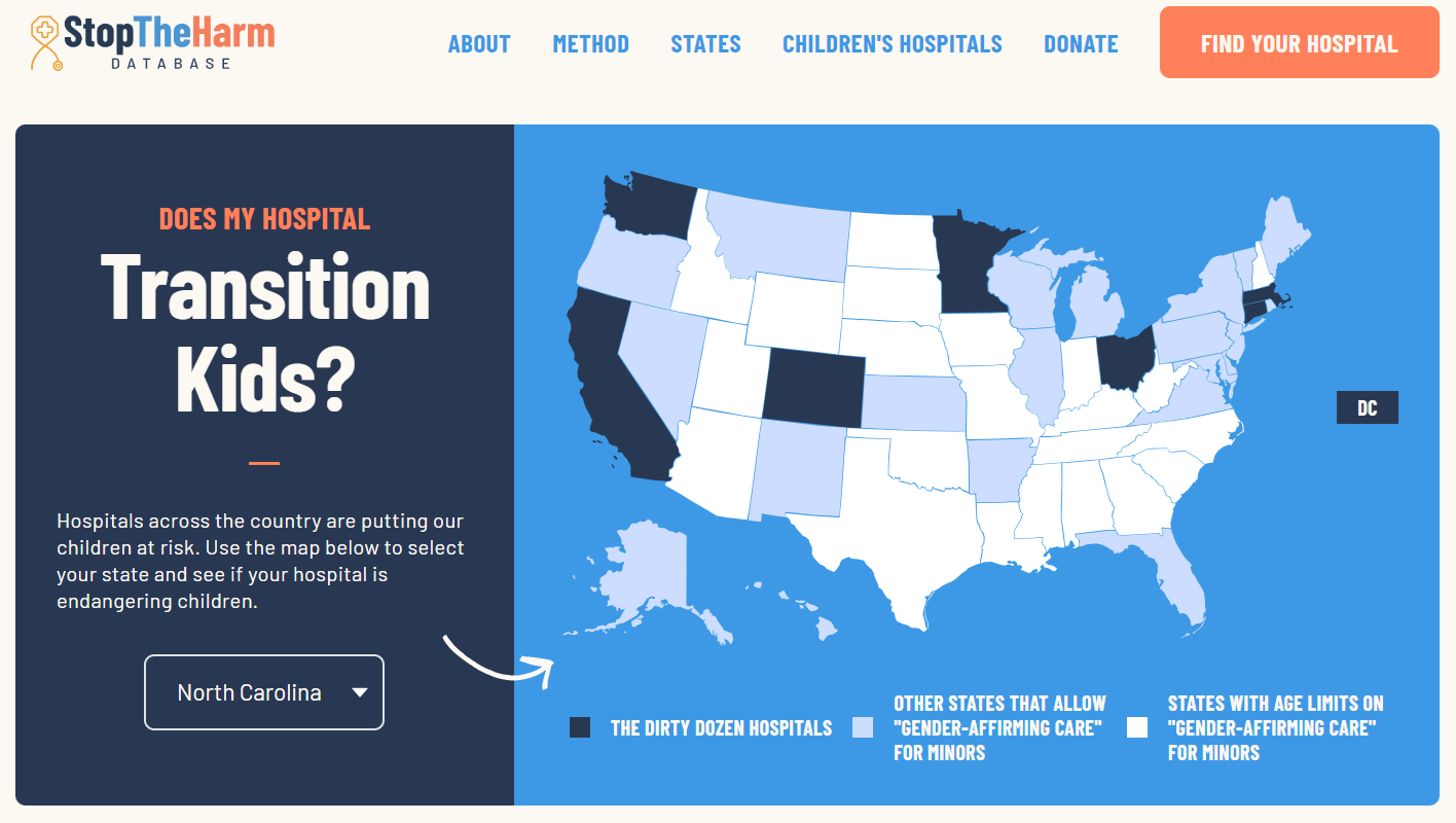 Spokespeople at children’s hospitals throughout the nation denied providing medical and surgical treatments for minors with gender dysphoria. Well, the claims data says otherwise. The medical advocacy organization Do No Harm recently released the StopTheHarm Database, which includes an interactive map of US hospitals that perform "gender-affirming care" on children.